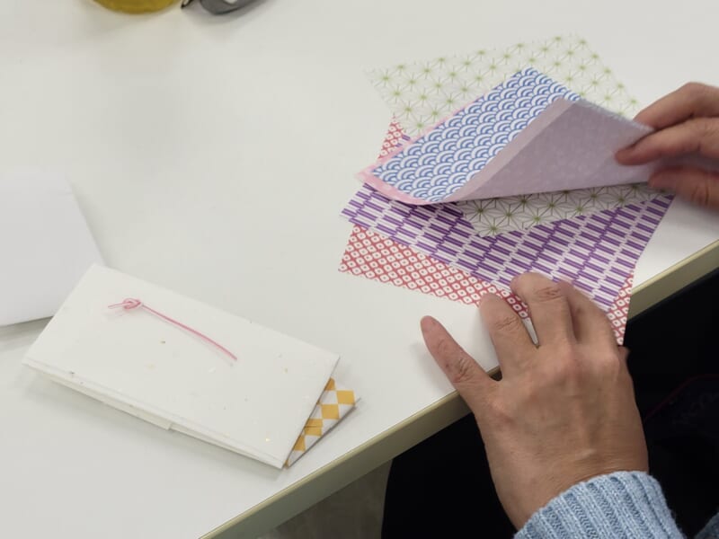 Participants crafted their own “Pochi-bukuro” (small envelopes for New Year’s money) using washi paper. Perhaps this year’s New Year’s envelopes will be handmade?