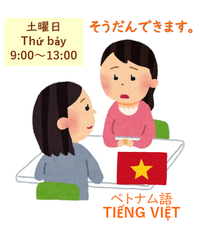 未分類 ベトナム語の新スタッフが土曜日午前に勤務します 未分類 2026.03.062026.03.08 2026年3月より、ベトナム語新スタッフが勤務します。勤務曜日は土曜日9時~13時です。ベトナム語で相談希望の方はこの時間をご利用ください。 べとなむ ご の すたっふ が どようび(9じ~13じ)に います。べとなむ ご で そうだん できます。