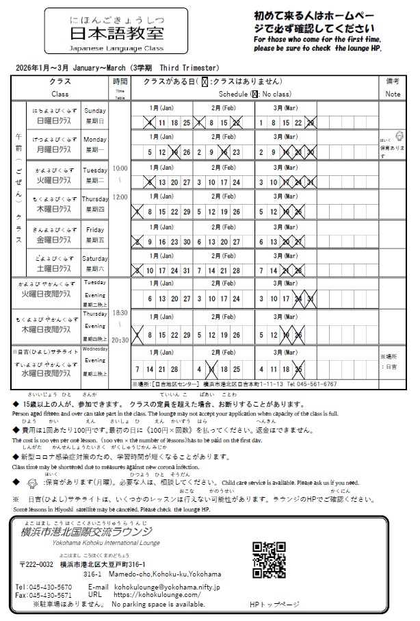 【にほんご】にってい(すけじゅーる) 2021.08.272025.11.27 ★日本語教室にほんごきょうしつ 2025年9月がつ~12月がつ(2学期がっきスケジュール) ★日本語教室にほんごきょうしつ 2026年ねん1月がつ~3月がつ(3学期がっきスケジュール)