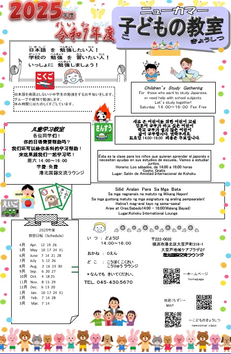 ★2025年度 ニューカマー子どもの教室がある日【予定】